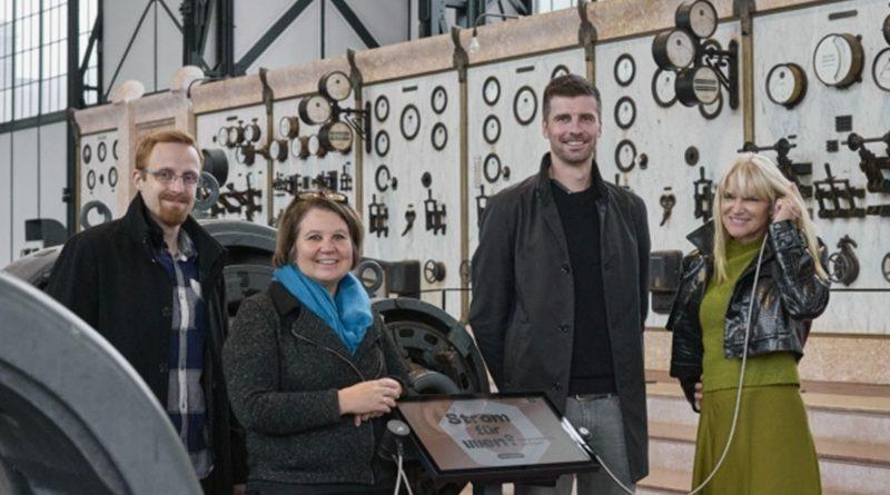 Foto: Hannes Cammans, wissenschaftlicher Volontär der Zeche Zollern, Museumsleiterin Dr. Anne Kugler-Mühlhofer, Technikhistoriker Nikolai Ingenerf und LWL-Kulturdezernentin Dr. Barbara Rüschoff Parzinger (v.l.) an einer der neuen Medienstationen in der Maschinenhalle der Zeche Zollern. Foto: LWL / Philipp Harms